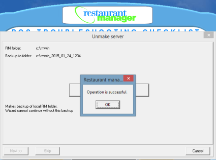 - Create a backup copy of the remote POS folder from original server for safety. Tap the "Back up original server's RM Folder" button.